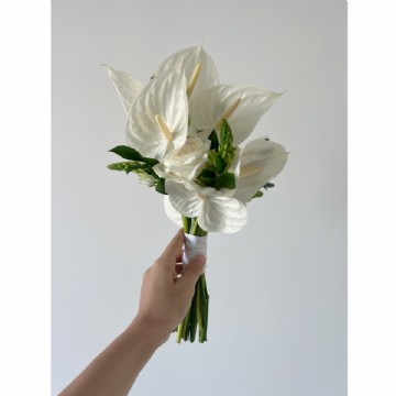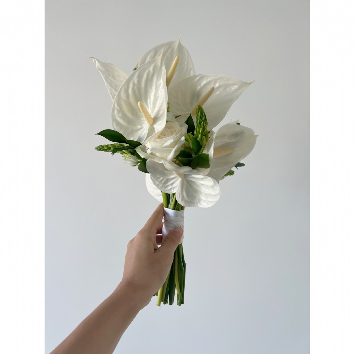 Bu gelin buketi, her bir antoryum çiçeÄŸinin doÄŸal güzelliÄŸini en iyi ÅŸekilde vurgulayacak ÅŸekilde özenle tasarlanmıştır. Antoryum çiçeklerinin göz alıcı yapısı, buketin zarif görünümünü tamamlar ve gelinliÄŸinizle mükemmel bir uyum içinde olmasını saÄŸlar.